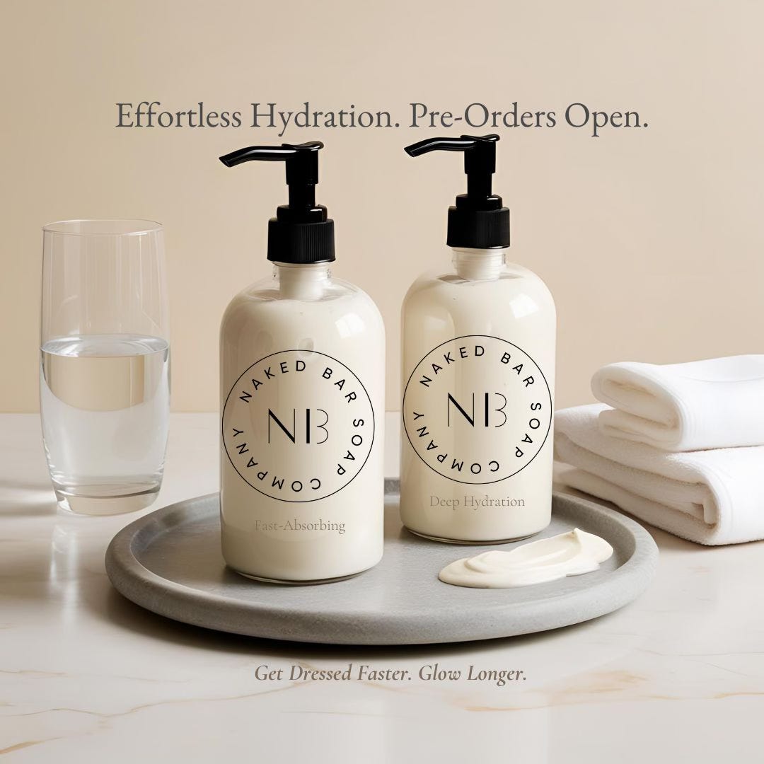 At Naked Bar Soap Co., we’ve lived this. We’ve been the women standing there, waiting for a lotion to dry, praying it wouldn’t transfer onto clothes, or leave us feeling sticky. That’s why we make products that solve the problem—soap bars that nourish, body oils that glow. But a lotion that absorbed quickly, hydrated deeply, and let us get dressed without the wait? That was missing.